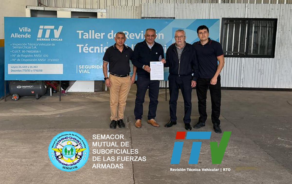 Con la presencia del Sr. Eddi Todesco, Presidente de la Mutual, el Sr. Germán García, Secretario de la Mutual junto al Ing. Luis García Meroi, Presidente de Grupo PITVESA y el Sr. Gastón Garcia, Director General Grupo PITVESA, se concretó la firma del acuerdo en la Planta de ITV Sierras Chicas – Villa Allende.