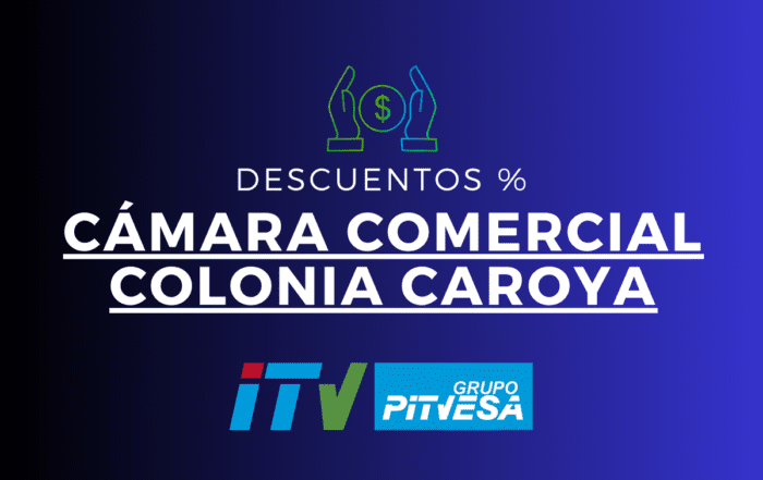 CÁMARA COMERCIAL, INDUSTRIAL, AGROPECUARIA Y DE SERVICIO DE COLONIA CAROYA Este beneficio que se otorga surge tras un acuerdo entre ITV Jesús María Ruta 9 Grupo Pitvesa y la Cámara Comercial, Industrial, Agropecuaria y [...]